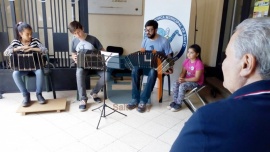 En el marco de la "Semana de la Serenata" que comenzó el lunes 15 de octubre, los jóvenes de la Escuela de Música Municipal llegaron este miércoles hasta las puertas del Palacio Municipal, donde fueron recibidos por el Jefe Comunal Ricardo Alessandro. Los estudiantes y docentes de la Escuela de Música, que llevan adelante un recorrido por los comercios y hogares de la ciudad acercando parte del gran trabajo artístico que realizan a lo largo del año, deleitaron al Intendente con excelentes melodías, en una serenata que estuvo encabezada por Dario Cossano, profesor de bandonión. En diálogo con los medios de comunicación, Cossano sostuvo que en esta oportunidad estuvo acompañado por Abril Perezlindo, Nazareno Bedini y Rhiana Goyeneche. Al hablar de sus alumnos y el amor de éstos por la música, el profesor indicó que "el bandonión es un lenguaje complejo para una edad pequeña, pero estamos tratando de sacarlos adelante, armando una orquestita. Es un instrumento dificil, pero algunos tocan solos u otros en grupo".