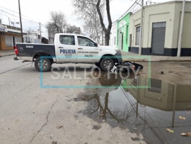 Un motociclista que transitaba en la zona de Avenida Mitre y calle Francisco Latrubesse, chocó esta mañana con un patrullero. Según pudo saber Salto Hoy, el conductor de la moto marca Guerrero Trip, de 22 años, fue embestido por el móvil policial del Puesto de Vigilancia de la localidad de Berdier, cuyo patrullero depende de la Estación de Policía Comunal de Salto. Producto del impacto, el joven motociclista sufrió lesiones graves y fue trasladado al Hospital "Presidente Juan Domingo Perón".  Allí personal médico constató que el joven herido presentaba fractura en el tobillo izquierdo, además de una herida cortante. El efectivo policial que conducía el móvil, en tanto, resultó ileso. Tras el accidente se cruzaron varias versiones. Por un lado, la madre de la víctima denunció a través de las redes sociales que el móvil se desplazaba a gran velocidad al momento del impacto.  "El patrullero venía a toda velocidad y su conductor venía sin mirar. Chocó a mi hijo que venía en su moto por avenida Mitre y él quedó con una pierna quebrada, hay que hacerle cirugía y colocarle dos clavos". Por su parte, desde la Comisaría las autoridades policiales informaron que, en principio, "el móvil no iría a alta velocidad como están diciendo en las redes. El patrullero se detiene en el mismo lugar de la colisión y sufre daños menores. Sin embargo se están haciendo las pericias y se solicitó el informe de velocidad por reporte de AVL (seguimiento de localización vehícular), sistema que tiene incoporado el móvil". En ese sentido, los jefes policiales detallaron que "esos informes determinan con certeza a qué velocidad iba previo a la colisión".