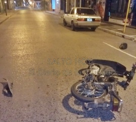 Una fractura de femur en su pie derecho sufrió un motociclista durante esta madrugada, al verse involucrado en un accidente. Ocurrió en la esquina de las calles 25 de Mayo y 9 de Julio, donde por causas que se investigan una moto marca Suzuki 110 Cc, colisionó contra un Volkswagen Senda, cuyo vehículo era conducido por un hombre mayor de edad con domicilio en Salto. Como consecuencia del impacto, el conductor del rodado de menor porte, también mayor de edad resultó con fractura de femur en su pie derecho, por lo que fue derivado en ambulancia al Hospital local. Según informaron desde la Dirección de Tránsito y Control Urbano del Municipio, ambos conductores manejaban bajo los efectos del alcohol. Ante esto, los vehículos intervinientes fueron secuestrados preventivamente, y la causa quedará en manos del Juez de Faltas.