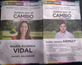 Uno y hasta dos pliegos hay que deshacer en la boleta de Juntos por el Cambio en Salto para llegar a ver la cara del presidente Macri y su precandidato a vice, Miguel Pichetto. La figura visible sigue siendo, por un lado la gobernadora Vidal, luego aparecen los precandidatos a diputados nacionales, encabezados por el actual ministro de Seguridad bonaerense, Cristian Ritondo y después aparece Macri, a quien muchos candidatos a intendentes de ese espacio han preferido esconder, tal es el caso de Daniel Arimay, el actual concejal que buscarà la intendencia.  Según publicaron algunos medios periodísticos, en Lanús y San Martín las boletas también están siendo repartidas con un doblaje que deja afuera a la foto de la fórm bula presidencial, para no correr más riesgos. Indudablemente, la mala imagen de Macri se convirtió en un peligro para las aspiraciones de los macristas.