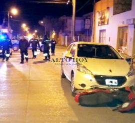 (De la Redacción, por Salto Hoy) - La calle San Pablo y Larrea fue escenario ayer de un nuevo accidente de tránsito, que involucró a un automóvil y una motocicleta. Por causas que se desconocen, un Peugeot 208 de color blanco colisionó contra una moto marca Guerrero Trip, de color roja, la cual era conducida por un hombre mayor de edad, quien iba acompañado por otra persona. Como consecuencia del impacto, los ocupantes del rodado menor fueron derivados al Hospital "Presidente Juan Domingo Perón", donde tras ser evaluados se constató que las lesiones presentadas no revestían gravedad.