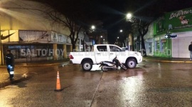 (De la Redacción, por Salto Hoy) - Cerca de las 00:20 de este viernes 4, la esquina de Buenos Aires y Avellaneda fue escenario de un accidente víal. Según informaron fuentes policiales, una moto conducida por un hombre de 35 años colisionó contra una camioneta marca Toyota, la que era manejada por un hombre de 40 años. Tras el impacto, el motociclista resultó con heridas leves y fue trasladado por el SAME al Hospital local.
