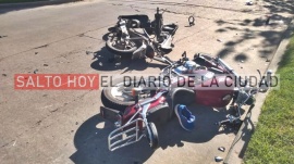 Un joven de 17 años permanece hospitalizado en la ciudad de Junín en estado de gravedad  como consecuencia de un fuerte choque registrado el jueves por la tarde en Salto.  La colisión ocurrió en la esquina de Alberti y Arredondo, donde por causas que son materia de investigación colisionaron una Mondial 250 cc, y una Gilera 100. Como consecuencia del impacto, el menor de 17, que iba al mando de la Mondial, resultó con lesiones graves, mientras que la mujer, de 30 años, que conducía la moto Gilera, sólo sufrió excoriaciones varias, siendo éstas de carácter leves.  Según fuentes sanitarias, el menor sufrió fractura doble parietal / occipital, hecho que motivó que sea trasladado desde Salto a un centro de mayor complejidad situado en Junín, donde permanece internado.