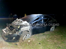 Efectivos del Comando de Prevención Rural de Salto (CPR) intervinieron en un vuelco registrado anoche en el camino real a Los Ángeles.  El vehículo marca Peugeot 408 era conducido por Carlos Alberto Arias, de 25 años, quien viajaba acompañado por Lucas Loyola (35), ambos con domicilio en Salto. Tras reventarse un neumático, Arias perdió el control del rodado  que terminó volcando. Afortunadamente, ambos ocupantes, que momentos antes salían de trabajar del campo y se desplazaban en sentido a nuestra ciudad, no sufrieron lesiones, informó la Comisario Guadalupe Fernández en diálogo con Salto Hoy.
