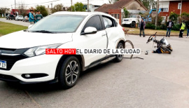 * Por Jonathan Rivera Cerca de las 17:00 horas de este viernes, en la esquina de la calle San Martín Y avenida España, se produjo un violento accidente entre una motocicleta Motomel Bit, 110 Cc; de color gris, cuyo rodado era guiado un joven mayor de edad, y una camioneta marca Honda HR, de color blanca, la que era conducida por un hombre de 63 años. La moto impactó contra la puerta trasera izquierda de la camioneta, hecho que provocó importantes daños sobre ambos rodados. Tras el choque, el conductor del rodado menor fue trasladado al nosocomio local donde hasta el momento lo están asistiendo los facultativos médicos; no obteniéndose hasta ahora el resultado de las lesiones sufridas.- Se labran actuaciones judiciales con intervención de la fiscalía 3 de Mercedes. -