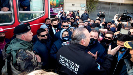 El ministro de Seguridad bonaerense Sergio Berni se apersonó ante el grupo de choferes de colectivos que realizan un corte en la avenida General Paz, a la altura de Alberdi, en protesta por el asesinato de un compañero en Virrey del Pino, partido de La Matanza. El piquete se inscribe en un paro de 24 horas de la Unión Tranviarios Automotor (UTA) y que alcanza a la zona Oeste del Gran Buenos Aires. Los choferes se encuentran concentrados en ese punto desde la madrugada tras el asesinato de Pablo Flores, chofer de la línea de colectivos del ramal 378, que fue asesinado de un balazo en la cabeza mientras circulaba por el barrio matancero de San Javier. Berni llegó al epicentro de la protesta en medio de un clima de de profundo malestar. Para el funcionario no le fue fácil presentarse ante los manifestantes. Algunos colectiveros hicieron evidenciar su indignación ante el crimen de su compañero de oficio con insultos y fuertes reclamos verbales. (Lihueel Althabe) "La gente va a sacar los colectivos. Vamos a trabajar con los choferes para diseñar un plan para darles más seguridad, acaban de matar a un compañero de ellos”, dijo Berni ante la prensa, tras entablar una negociación para finalizar el bloqueo en el tránsito. “Me pidieron lo que pide cualquier persona que está en la calle: seguridad”, resaltó el ministro. Fiel a su estilo confrontativo, el funcionario se mostró molesto con la desorganización y los periodistas que querían hacerle preguntas. “¡Bueno basta, ahora hablo yo! ¡Silencio, silencio, de a uno, si no esto es cualquier cosa! Vamos a organizarnos”, dijo hacia las 9 de la mañana. (Lihueel Althabe) Hacia las 10 de la mañana, representantes de los choferes de la línea 218 y el ministro de Seguridad se encontraban negociando para elaborar un Plan de Seguridad. Los trabajadores esperaban una propuesta concreta para levantar las medidas de fuerza y el piquete en la General Paz. El paro de los conductores de la UTA tenía un impacto desigual en más de 40 líneas de la zona oeste del conurbano bonaerense. Junto a la huelga, se realizaba un corte total de la avenida General Paz, a la altura de Juan Bautista Alberdi. La protesta tuvo sus picos de furia. Un grupo de choferes y vecinos realizaron anoche una manifestación frente a la comisaría de Virrey del Pino que finalizó en graves incidentes, que incluyó enfrentamientos con la Policía bonaerense, quema de patrulleros, balazos de goma y gases lacrimógenos. (Lihueel Althabe) Esta mañana, los compañeros de trabajo de Flores manifestaban su descontento por el crimen y solicitaron mayores medidas de seguridad. Mientras tanto, los investigadores intentaban esclarecer el motivo del homicidio e identificar a sus autores. “Lo que sí sabemos es que no fue un robo. Lo importante es que un compañero de ellos está muerto y hay que darle una respuesta”, aseguró Sergio Berni acerca del homicidio. Fuente: Infobae