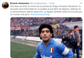 De la Redacción, por Salto Hoy l La muerte de Diego Armando Maradona a los 60 años de edad genera por estas horas una gran conmoción. La fatídica noticia se conoció hace una hora.  Personalidades del deporte y la política se hacen eco de la noticia y lamentan el fallecimiento del astro argentino, quien venía recuperándose tras ser intervenido por un hematoma subdural. En Salto, el Intendente Ricardo Alessandro se volcó a su cuenta de Twitter, donde aseguró que "nos llena de dolor la noticia de la partida de Diego Maradona". En ese sentido, Alessandro sostuvo: "Su recuerdo será imborrable en un pueblo al que llenó de alegrías. Además de su extraordinario talento deportivo, su legado también radica en la lucha por un mundo más justo". Por su parte, Camilo Alessandro, Secretario General de la Municipalidad escribió: "Gracias por darle tantas alegrías al pueblo argentino. Ídolo, descansa en paz".