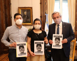 Alberto Fernándezrecibió este jueves a Silvino Báez y Graciela Sosa, padre y madre de Fernando Báez Sosa, el joven asesinado hace un año a la salida de un boliche en la localidad bonaerense de Villa Gesell. En el encuentro en Casa Rosada con Alberto Fernández participaron también el legislador Leandro Santoro y el miembro del Observatorio de Víctimas del Delito y sobreviviente de la Masacre de Flores, Matías Bagnato, informaron fuentes oficiales. De acuerdo a los voceros, el domingo próximo se realizará una colecta solidaria en honor Fernando Báez Sosa dado que el lunes se cumple un año de cometido el crimen. EL HECHO Fernando Báez Sosa fue atacado a golpes la madrugada del 18 de enero de 2020, a la salida del boliche Le Brique, en avenida 3, pleno centro de Villa Gesell, adonde había ido a bailar con unos amigos. Horas después de la muerte del joven estudiante de Derecho, que residía en la Ciudad Autónoma de Buenos Aires y había viajado a la costa a pasar unos días a Villa Gesell, la policía detuvo a 10 rugbiers oriundos de la localidad bonaerense de Zárate que habían alquilado una casa a pocas cuadras de la escena del crimen. En noviembre pasado, la fiscal de la causa, Verónica Zamboni, pidió que ocho de esos imputados sean sometidos a juicio por el delito de homicidio doblemente agravado por alevosía y el concurso premeditado de dos o más personas. Se trata de Máximo Thomsen (20), Ciro Pertossi (20), Luciano Pertossi (19), Lucas Pertossi (21), Enzo Comelli (20), Matías Benicelli (21), Blas Cinalli (19) y Ayrton Viollaz (21), quienes cumplen prisión preventiva en la Alcaidía 3 del penal de Melchor Romero. Zamboni pidió además el sobreseimiento de Alejo Milanesi (19) y Juan Pedro Guarino (19), quienes se encuentran en libertad, imputados como partícipes necesarios.