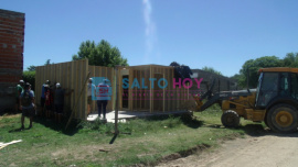 A diferencia de la tensión vivida el martes  19 de enero por la tarde, en el desalojo por usurpación de un terreno ubicado sobre calle Agustín Magaldi, el desalojo llevado a cabo durante la tarde del miércoles 20 en calle Malvinas Argentinas a metros de Avda.Rebagliatti, pudo realizarse sin ningún tipo de resistencia. Luego de la comunicación formal por parte de personal del área de Legales del Municipio, una cuadrilla de operarios municipales procedieron a desarmar la vivienda prefabricada que ya estaba instalada, sin ejercer ningún tipo de violencia y los paneles que la constituyen fueron entregados a la propietaria para su resguardo. Es importante aclarar que, a diferencia de la casilla de calle Agustín Magaldi, esta vivienda en cuestión aún no estaba habitada. El desalojo del lugar se dio en medio de un fuerte operativo policial - Foto: SALTO HOY Si bien el personal de Tránsito y control Urbano procedió a cortar la circulación en ese tramo de arteria, la operación de desarme, se realizó en un lapso de una hora y media, con participación de maquinaria y vehículos del Corralón Municipal. Mientras se realizaban las diligencias, periodistas de Salto Hoy y La Palabra tuvimos la oportunidad de entrevistar a la dueña de la casa, quien exhibió documentación que acredita su derecho de propiedad sobre el lugar, en la forma de una escritura de la vivienda, que fuera realizada en el año 2018 y entregada por el mismo Intendente Alessandro. De la misma manera, nos fueron exhibidos planos de la Dirección de Geodesia, con fecha posterior, que modifican el metraje asignado a la calzada. Estas circunstancias, sin duda, abrirán el camino para reclamos posteriores de algunos frentistas de la misma calle, cuyas construcciones han quedado fuera de línea. Operarios de la Municipalidad retiraron la casa prefabricada - Foto: SALTO HOY Lo importante es ver que ambas partes en conflicto, tanto desde el Municipio como desde la familia ocupante, ha primado el buen tratamiento de la problemática, que será, seguramente, materia de decisión mediante intervención judicial. Con información de La Palabra - Fotos: Salto Hoy