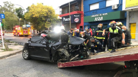 Dos jóvenes hermanas de 22 y 26 años murieron esta madrugada luego de un violento accidente producido en Lanús Oeste. Según reconstruyeron los testigos del siniestro, las mujeres se trasladaban junto a otras cuatro personas en un Audi que impactó a gran velocidad en una columna, ubicada en la intersección de las calles Rivadavia y Viamonte. De acuerdo a las tareas preliminares de la Policía, se cree que el vehículo transitaba a altísima velocidad en el momento en que el conductor perdió el control. Defensa Civil arribó llegó a la zona a las 3:45 y en conjunto con los Bomberos tuvieron que recortar parte del auto para rescatar las víctimas que habían quedado atrapadas en la parte de atrás. En ese momento constataron que Denise Nicole Ojeda (22 años) y Agustina Ojeda (26) habían fallecido en el acto. El conductor, identificado como Demián Osvaldo Pedreira (27), logró bajar por sus propios medios. Belén Castillo, de 19 años, y Alejandro Weber de 28 fueron trasladados con politraumatismos y fracturas al Hospital Evita. “Sacamos a un joven que estaba muy asustado, en crisis de nervios, preguntando por sus amigos. Tenía politraumatismos varios al igual que el resto de los ocupantes del vehículo. No hubo otros autos involucrados en el choque”, contó Hernando Jorge, jefe de bomberos que participó el operativo. Además de impactar con una columna, el automóvil destruyó el frente de un local de lotería y provocó que se derrumbara parte de su techo. Tal fue la violencia del accidente, que el motor del vehículo importado se desprendió y terminó a varios metros del resto de la máquina. El alcohol fue un agravante. Los bomberos encontraron restos de vasos y botellas. Los jóvenes subieron imágenes a redes sociales que habrían sido registradas pocos minutos antes del impacto dentro del mismo Audi. Allí se los puede ver cantando, bailando y bebiendo. A Pedreira -el conductor- le extrajeron sangre para constatar si había ingerido alcohol y se espera el resultado. Tanto él como el acompañante quedaron internados y bajo custodia policial a la espera de las primeras definiciones de la Justicia. El de Lanús no fue el único accidente de este Viernes Santo. Una Chevrolet Tracker roja y un Toyota Corolla chocaron en Independencia y Lima, en la Ciudad Autónoma de Buenos Aires. Afortunadamente no hubo heridos graves. Los testigos dicen que la camioneta cruzó el semáforo en rojo. Fuente: infobae