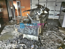De la Redacción, por Salto Hoy Un incendio de proporciones se registró durante la medianoche de este jueves 6 de mayo en una pollería situada sobre avenida Mitre al 600, a metros de su intersección con calle Suipacha. Las causas que originaron el fuego aún se desconocen, aunque fuentes oficiales manejan la hipótesis de un siniestro accidental; es decir, causado por un posible cortocircuito.  El móvil número 44 de bomberos fue el primero en llegar al lugar. Sin embargo, ante la magnitud del incendio, debieron pedir la colaboración de otra unidad, arribando a la zona el móvil de abastecimiento N° 47. Bomberos, policías, agentes de tránsito y personal de la Cooperativa trabajaron durante el incendio El siniestro afectó la totalidad del local, provocando la caída del revoque del techo y de las luminarias de la pollería, además de importantes daños sobre las heladeras y el sector de la caja registradora, informaron fuentes bomberiles. La situación demandó más de una hora de trabajo, por lo que policía y agentes de la Dirección de Tránsito debieron cortar la avenida para que los Bomberos pudiesen desarrollar su labor con mayor tranquilidad. Por su parte, personal de la Cooperativa Eléctrica de Salto, procedió a cortar la electricidad en el local.  Daños sobre el techo del local como consecuencia del fuego