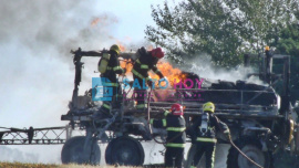 De la Redacción, por Salto Hoy Bomberos de Salto debieron intervenir este sábado ante el incendio de una máquina fumigadora en un predio rural de la zona. A pesar de la intervención, la maquinaria fue consumida por el fuego. El predio donde se produjo el siniestro se encuentra ubicado sobre la ruta provincial N° 32 mano a la ciudad de Pergamino, entre el puente del río Salto y el cementerio privado Campo de Paz.  Si bien las causas del incendio aún se tratan de establecer, los investigadores sospechan que el fuego se habría originado por una falla eléctrica. Las llamas produjeron la destrucción total del vehículo. En el lugar trabajó una dotación de bomberos, que llegó al lugar a bordo del móvil N° 47.