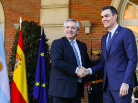 El presidente Alberto Fernández recibirá en la Casa Rosada al jefe del Gobierno de España, Pedro Sánchez, con el objetivo de fortalecer la relación entre ambos países. Está prevista una reunión bilateral, compartirá un encuentro con empresarios del país ibérico y la firma de una serie de acuerdos en diversas áreas de trabajo. Pedro Sánchez llegó anoche en un vuelo oficial junto a una importante comitiva de funcionarios y empresarios para iniciar una serie de actividades junto al mandatario argentino con el foco puesto en relanzar la relación estratégica y avanzar en la "asociación pública y privada" de la economía de los dos países. El jefe del Gobierno español arribó acompañado por María Reyes Maroto Illera, ministra de Industria, Comercio y Turismo; Cristina Gallach Figueras, secretaria de Estado de Asuntos Exteriores y para Iberoamérica y el Caribe, y Manuel de la Rocha Vázquez, secretario General de Asuntos Económicos y G20 del Gabinete de la Presidencia del Gobierno. Además, viajan junto al mandatario una decena de empresarios con importantes inversiones en la Argentina y dos líderes de centrales sindicales. Desde la Presidencia de la Nación, detallaron que Alberto Fernández recibirá a Sánchez a las 10.30 en la explanada de la Casa Rosada, luego se dirigirán al Salón de los Bustos para la realizar la tradicional foto oficial. Luego los mandatarios se trasladarán al Museo del Bicentenario, donde, a partir de las 11, compartirán una reunión de trabajo con empresarios españoles. Al término de esta actividad el Presidente y su par español dirigirán algunas palabras a los hombres de negocio de la península ibérica, y luego se dirigirán al despacho presidencial de la Casa Rosada para sostener una audiencia privada. Tras la reunión bilateral, Alberto Fernández y Pedro Sánchez encabezarán la firma de acuerdos en el Salón Blanco, donde además realizarán una declaración conjunta. Entre los acuerdos se destacan el Plan de Acción Estratégica; la Declaración de Buenos Aires; la Declaración sobre el intercambio de archivos diplomáticos referidos a la última dictadura militar en Argentina y la Declaración conjunta sobre temas de género. Previo al almuerzo que ofrecerá Alberto Fernández en honor a su par español y a su comitiva, en el Salón Eva Perón, ambos brindarán una conferencia de prensa prevista a las 13 horas, en el helipuerto presidencial.